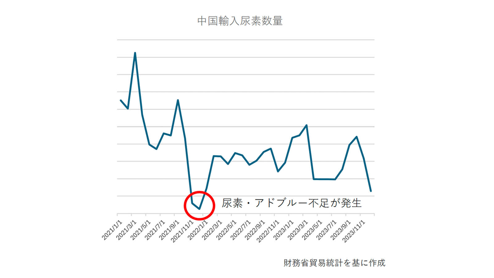 2021年末から2022年初頭にかけて、日本国内でディーゼル車用の排ガス浄化液「アドブルー」が品薄状態に陥ったのをご存じでしょうか。この不足の主な要因は、尿素の原産国である中国による輸出制限です。中国では2021年10月、石炭や天然ガス価格の高騰などを背景に、肥料用途での国内需要を優先するため尿素の輸出管理を強化しました。これにより、尿素を原料とするアドブルーの国際的な供給バランスが崩れ、とくに韓国ではトラックの運行ができなくなるほどの混乱が発生し、一時は消防車や救急車などの緊急車両まで走行不能に陥るおそれがあると懸念されました。現在もなお、中国など主要供給国による輸出規制が断続的に行われており、状況は依然として不安定で、同様の事態が再び発生する可能性も決してゼロではありません。